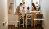 Nos peintures biosourcées, nos papiers peints sans PVC et imprimés avec des encres à très faibles émissions, ainsi que le choix de Parador comme fournisseur revêtements de sol, ont été pensés pour limiter l’exposition aux substances indésirables dans l’habitat.