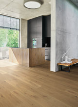 Le parquet contrecollé, grâce à sa structure multicouche, offre une meilleure stabilité dimensionnelle tout en conservant l’aspect et le toucher du bois naturel.